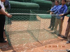 格賓網(wǎng)由各種網(wǎng)孔規(guī)格的格賓網(wǎng)片按照ASTM A975-97規(guī)范組裝而成。工程現(xiàn)場填充石料組裝形成柔性的、透水的、整體的支擋結(jié)構(gòu),用于生態(tài)防護(hù)工程。網(wǎng)絲采用高鍍鋅鋼絲或者10%鋁鋅合金鋼絲,如果環(huán)境條件比較惡劣,污染比較嚴(yán)重,可以在鋼絲的表面涂塑(PVC),以增強(qiáng)網(wǎng)絲的抗腐蝕性能。格賓網(wǎng)網(wǎng)孔規(guī)格:6×8cm 8×10cm 10×12cm 12×15cm。格賓網(wǎng)絲徑:2.0-4.0mm(注:為加強(qiáng)網(wǎng)子本身的穩(wěn)固性邊絲要比網(wǎng)絲大1mm)。格賓網(wǎng)材質(zhì):熱鍍鋅 電鍍 PVC、PE包塑 高爾凡(鋅鋁合金) 【鍍鋅(含鋅量):電鍍:10-25g/㎡;熱鍍:30-300g/㎡】。格賓網(wǎng)的用途:本產(chǎn)品廣泛用于高速公路、鐵路護(hù)欄、邊坡防護(hù)、邊坡綠化、山體沿面、掛網(wǎng)噴漿、井巷防護(hù)、建筑、養(yǎng)殖用網(wǎng)、動物園圍欄、草原圍欄、山坡網(wǎng)箱、抗洪網(wǎng)箱、護(hù)堤欄網(wǎng)、控制和引導(dǎo)河流走向、泄洪壩和導(dǎo)流渠、巖崩防護(hù)、大橋保護(hù),固土結(jié)構(gòu),擋土墻,防止水土流失、海濱防御工程、港口工程等。