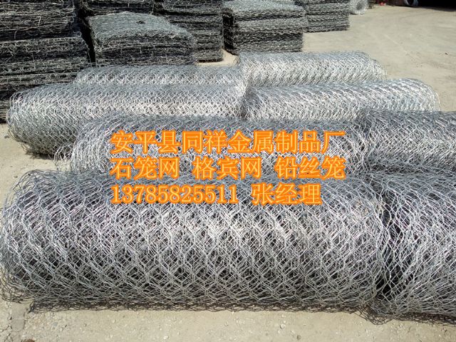點:格賓網(wǎng)廠為防止沖刷陶底時 石籠是由金屬線材由機械將雙線絞合(double twisted wire)編織成的多絞狀六角形網(wǎng)制成的網(wǎng)箱。